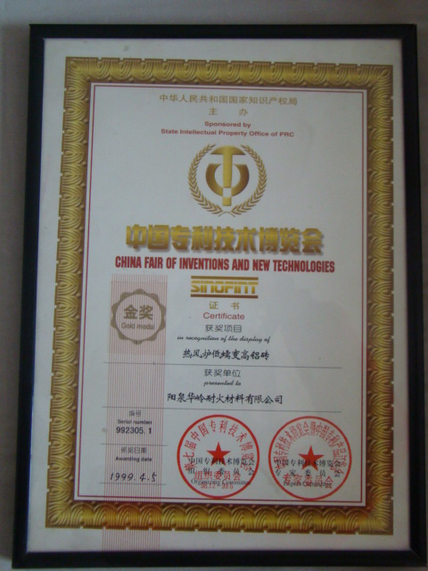 熱風(fēng)爐用低蠕變高鋁磚、高荷軟高鋁磚獲省科技進(jìn)步二等獎,微膨脹高鋁磚列入火炬計劃項(xiàng)目,炭素焙燒爐用特種高鋁磚已批準(zhǔn)國家專利